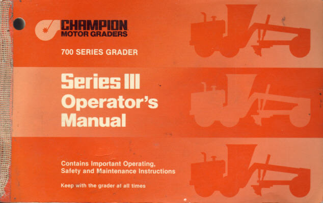 Champion 700 Series III Motor Grader Operator's Manual - L-4014-01 - 5/1991